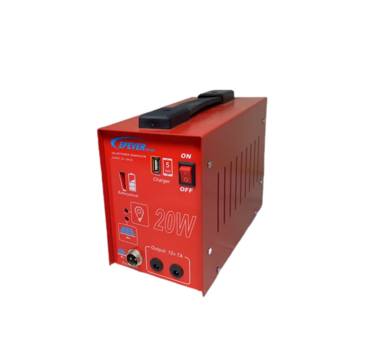 این دستگاه کوچک و قابل حمل میتواند 2 عدد لامپ 12 ولت 6 وات را تا 15 ساعت روشن کند و در عرض ع ساعت از طریق پنا 20 وات همراه شارژ شود و مجهز به محل اتصال جهت شارژ موبایل امیباشد